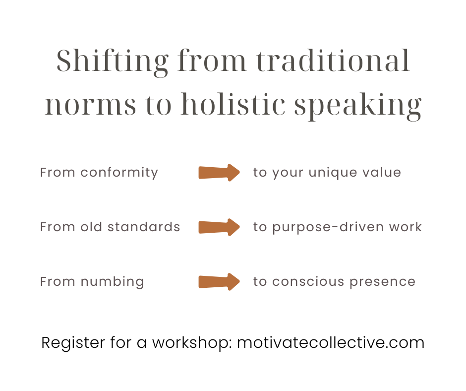 The "Holistic Speaking" workshop by Motivate Collective is a transformative experience designed to empower individuals to communicate authentically and confidently.